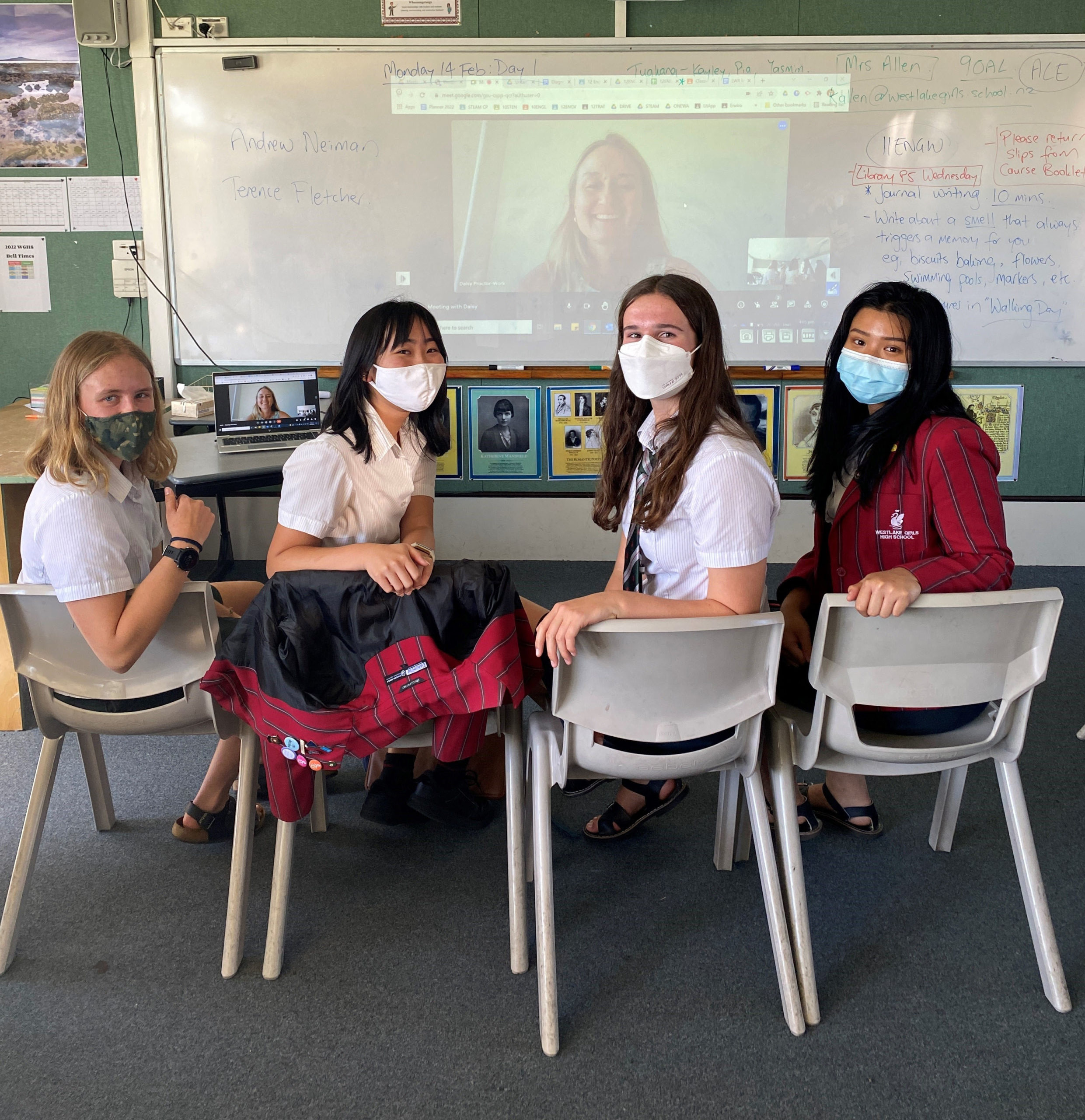 Pictured above: The Enviro group on a Zoom with Daisy, the Auckland Council Enviro Schools Co-ordinator. She assisted the students in setting up their year planner and putting them in touch with other community groups as one of their goals this year is to have wider community engagement.